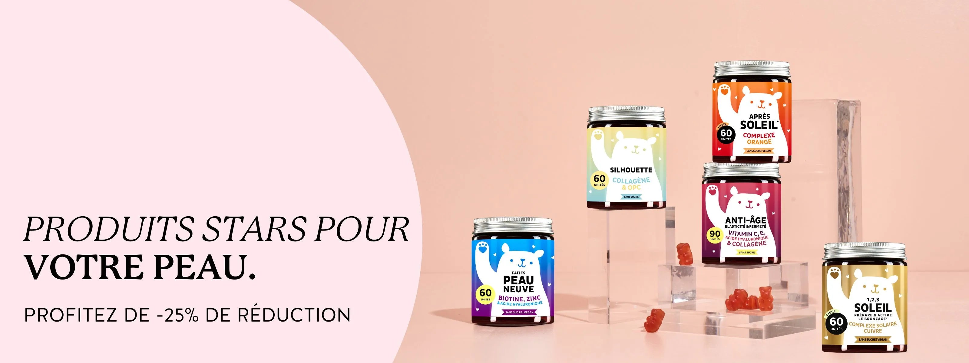 Si le stress quotidien donne à votre peau un aspect fatigué et terne, n'hésitez pas à essayer nos gummies pour la peau Bears with Benefits. Nos compléments comprennentde puissants antioxydants comme l'acide hyaluronique, qui favorise l'hydratation de la peau, et le collagène, qui améliore l'élasticité de la peau et aide à réduire l'apparence des rides. Nos formules sont également enrichies de vitamines essentielles pour la peau, telles que la vitamine C et la vitamine E. Pour en savoir plus sur les soins de la peau, vous pouvez lire notre article : « Les soins de la peau - pourquoi sont-ils si importants ? ».