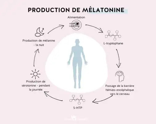 La production de mélatonine est influencée par des signaux provenant de la rétine, comme la lumière, mais aussi par l'alimentation ou par d'autres hormones. Autrement dit, la production est freinée par la lumière pendant la journée et stimulée la nuit ou dans l'obscurité. Mais comme pour toutes choses, l'âge a aussi son importance. En effet, avec l'âge, la production de mélatonine par l'organisme diminue. D'autres facteurs peuvent également influencer sa production, comme par exemple un excès de caféine, le stress ou les longues journées d'été. C'est la raison pour laquelle de nombreux médecins recommandent la prise d'un complément alimentaire à base de mélatonine.