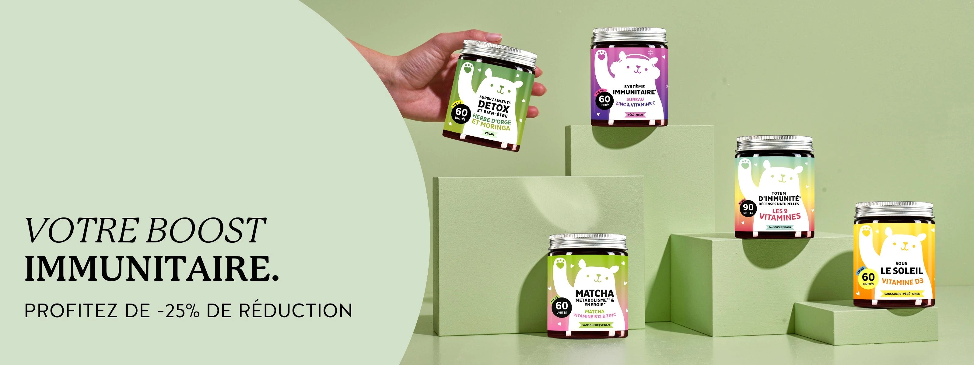 La combinaison parfaite de vitamines et de minéraux essentiels dans Totem d'immunité - défenses naturelles et de la vitamine D à haut dosage dans Sous le soleil - avec vitamine D3 offre un soutien idéal pour le système immunitaire, les os et les muscles. Pour en savoir plus, consultez notre guide : Astuces pour avoir un système immunitaire fort comme un ours !